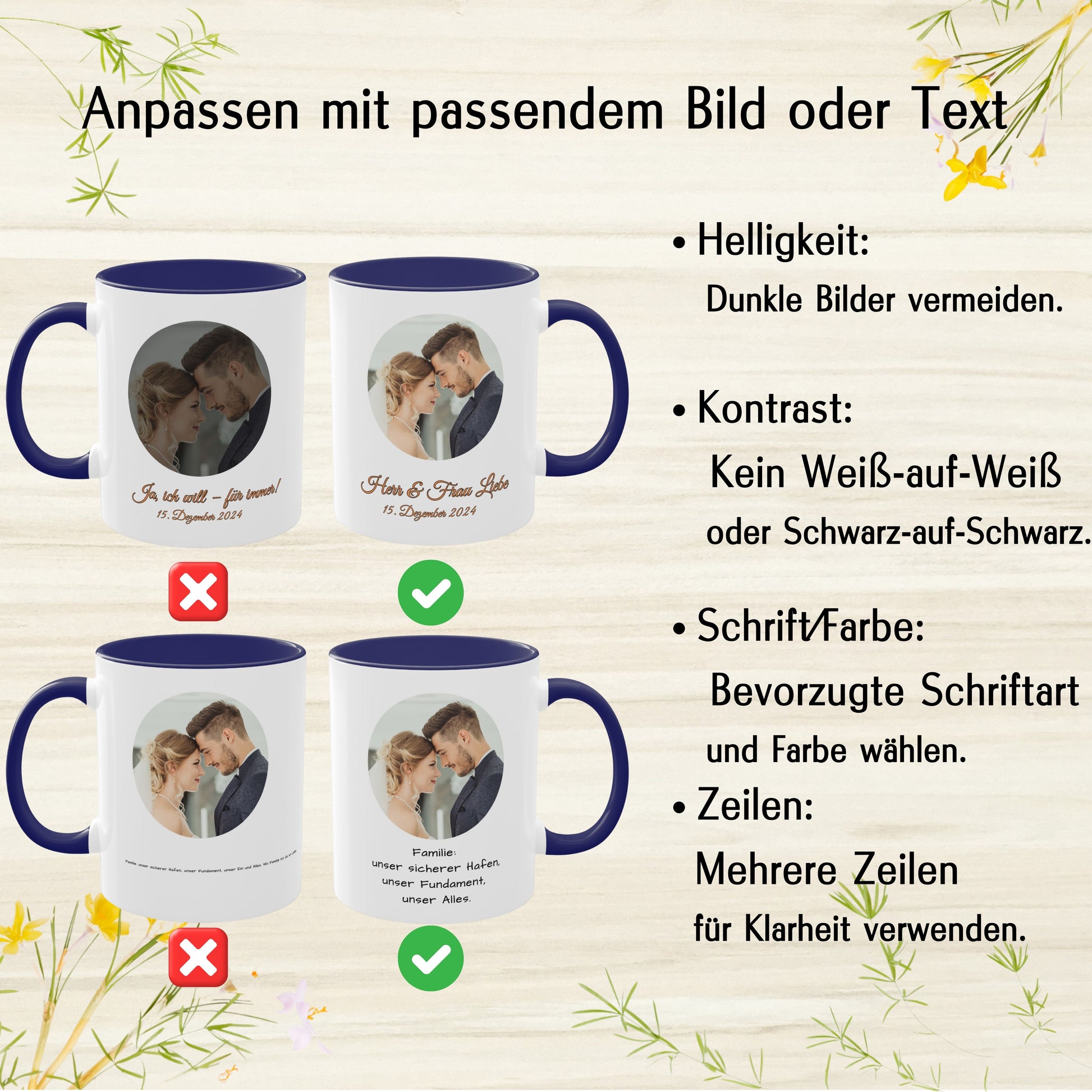 - Gestalten Sie Ihre Tasse individuell mit einem Foto, einem Haustierbild, einem Familienfoto, einem Text oder einem Logo.