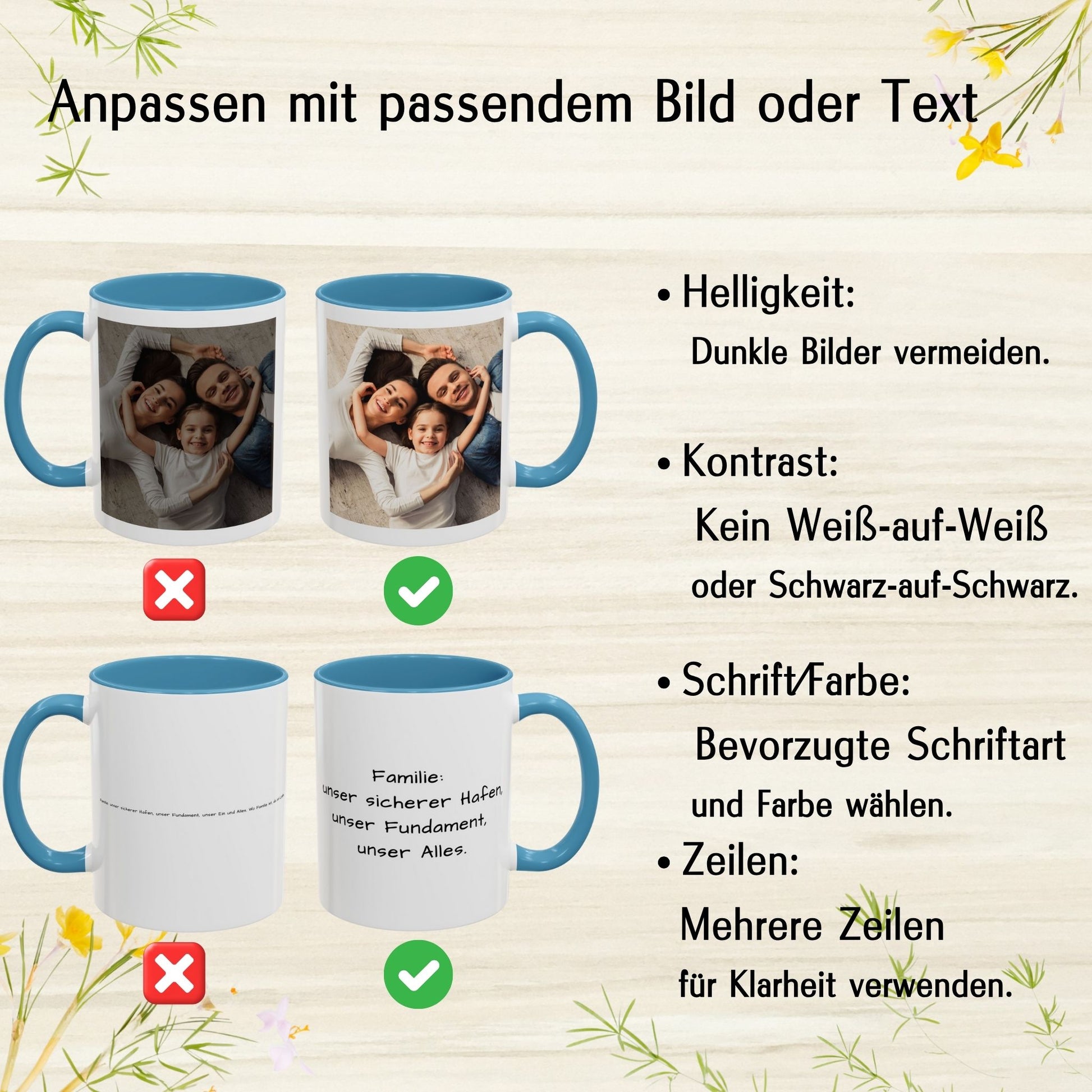 - Gestalten Sie Ihre Tasse individuell mit einem Foto, einem Haustierbild, einem Familienfoto, einem Text oder einem Logo.
