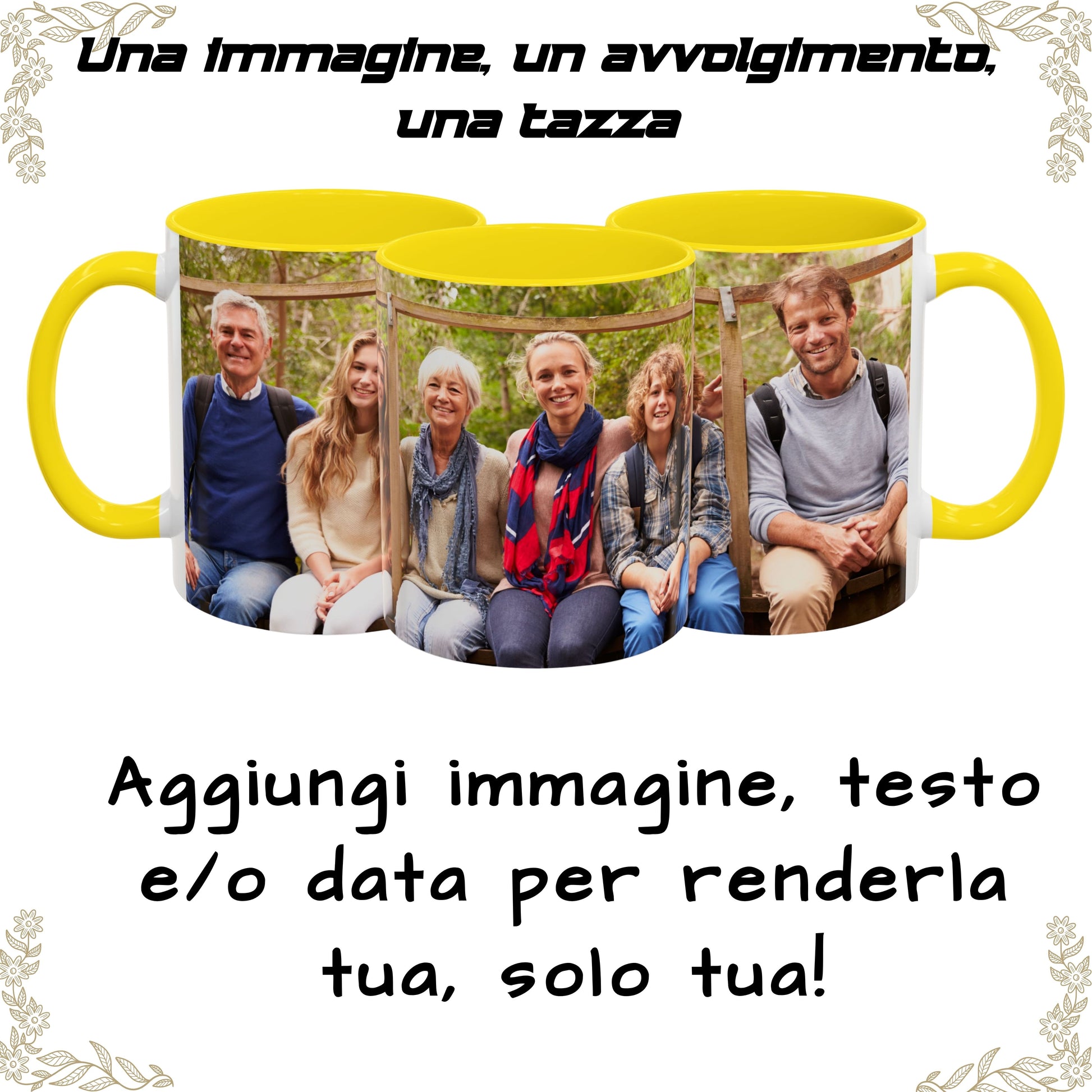 Tazza personalizzata, 325 ml Bianco/giallo Design avvolgente Tazza da caffè in ceramica, Regalo personalizzato con foto, testo o logo
