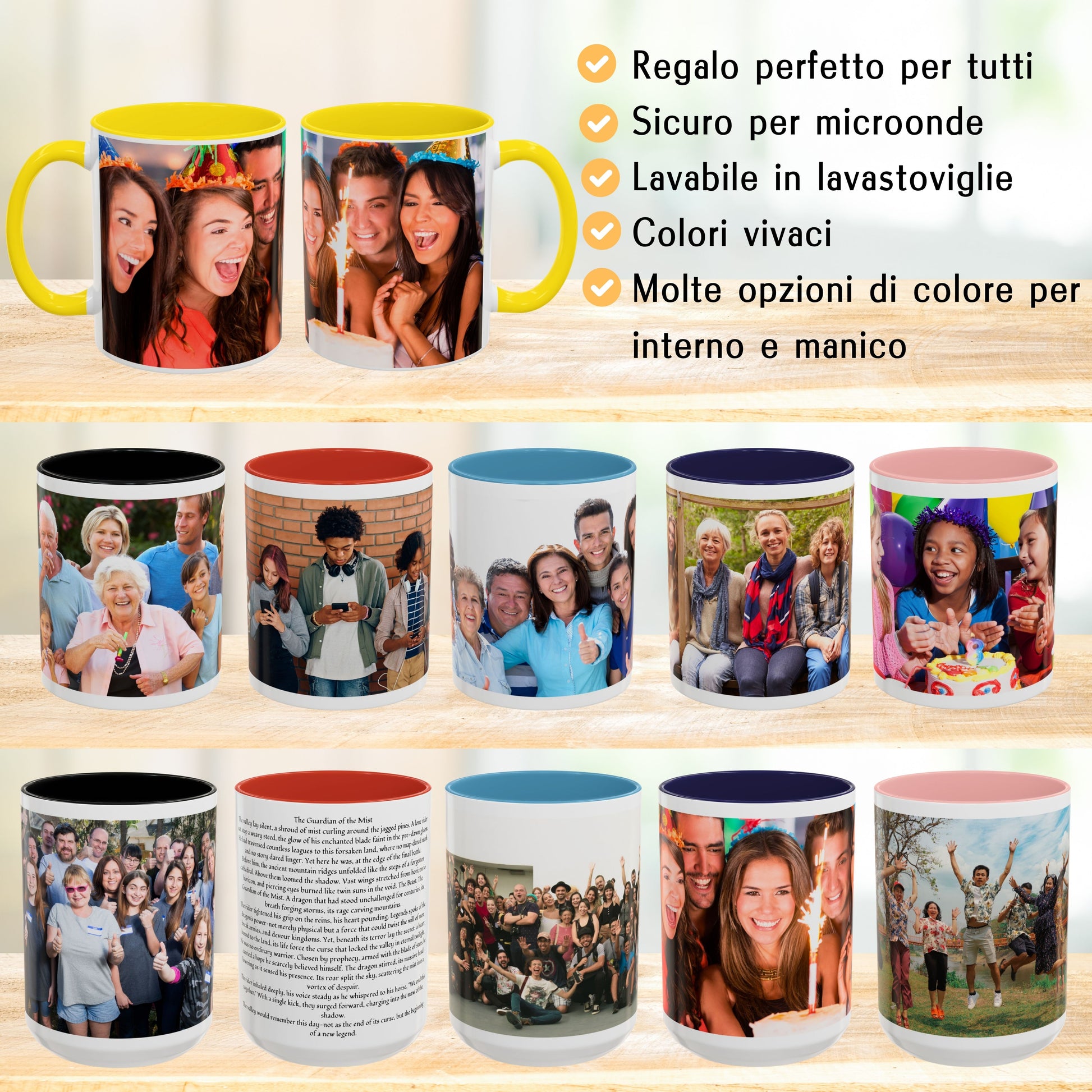 - Personalizza la tua tazza con una foto, un’immagine del tuo animale domestico, una foto di famiglia, del testo o un logo per un design personale.