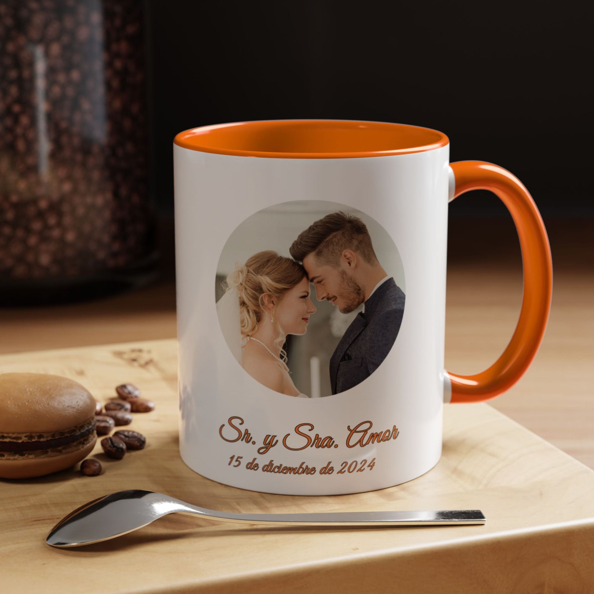 Custom Mug, 11oz White/Orange Circle Design Ceramic Coffee Mug, Personalized Gift with Photo, Text or Logo