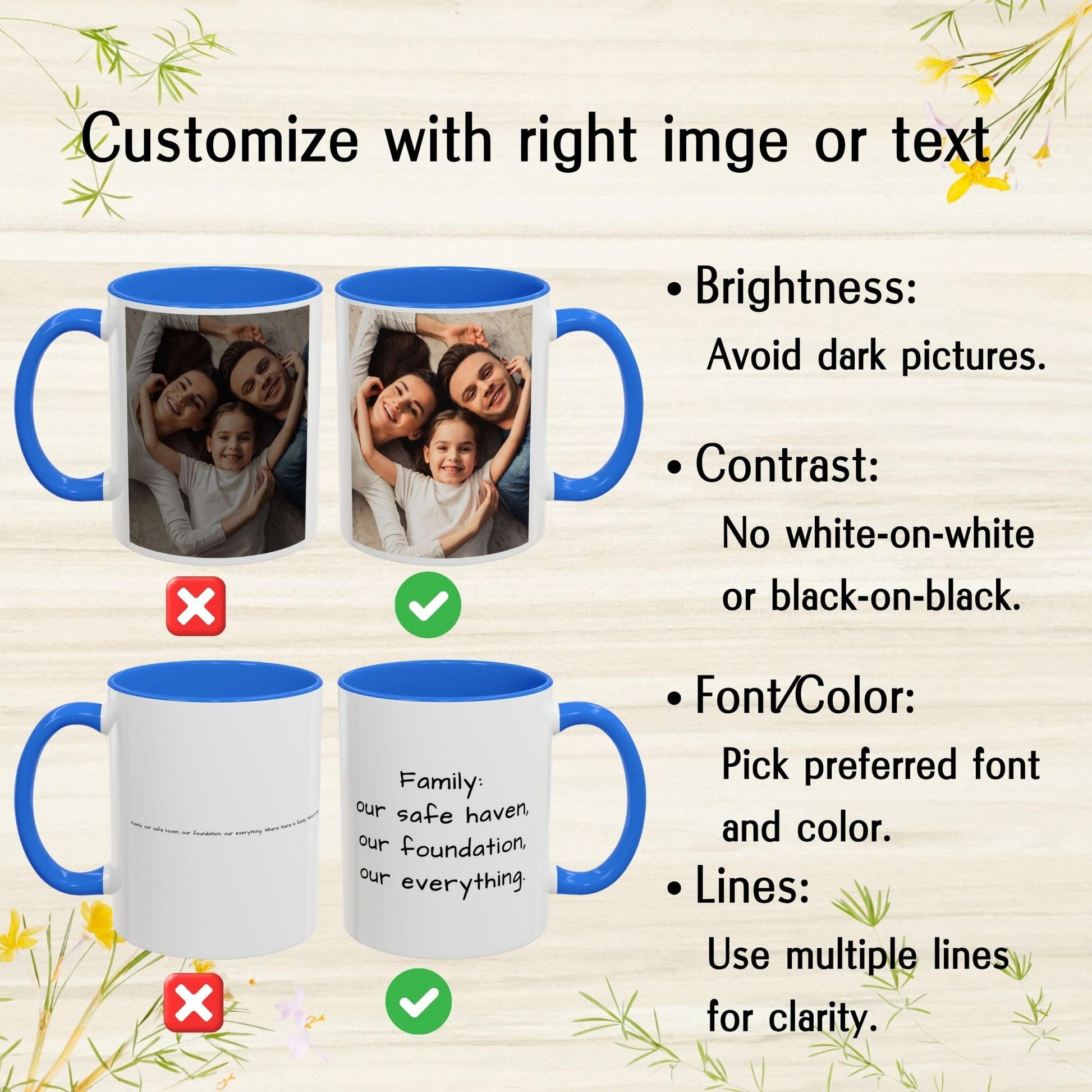 - Personnalisez votre tasse avec une photo, une image de votre animal de compagnie, une photo de famille, du texte ou un logo pour un design unique.