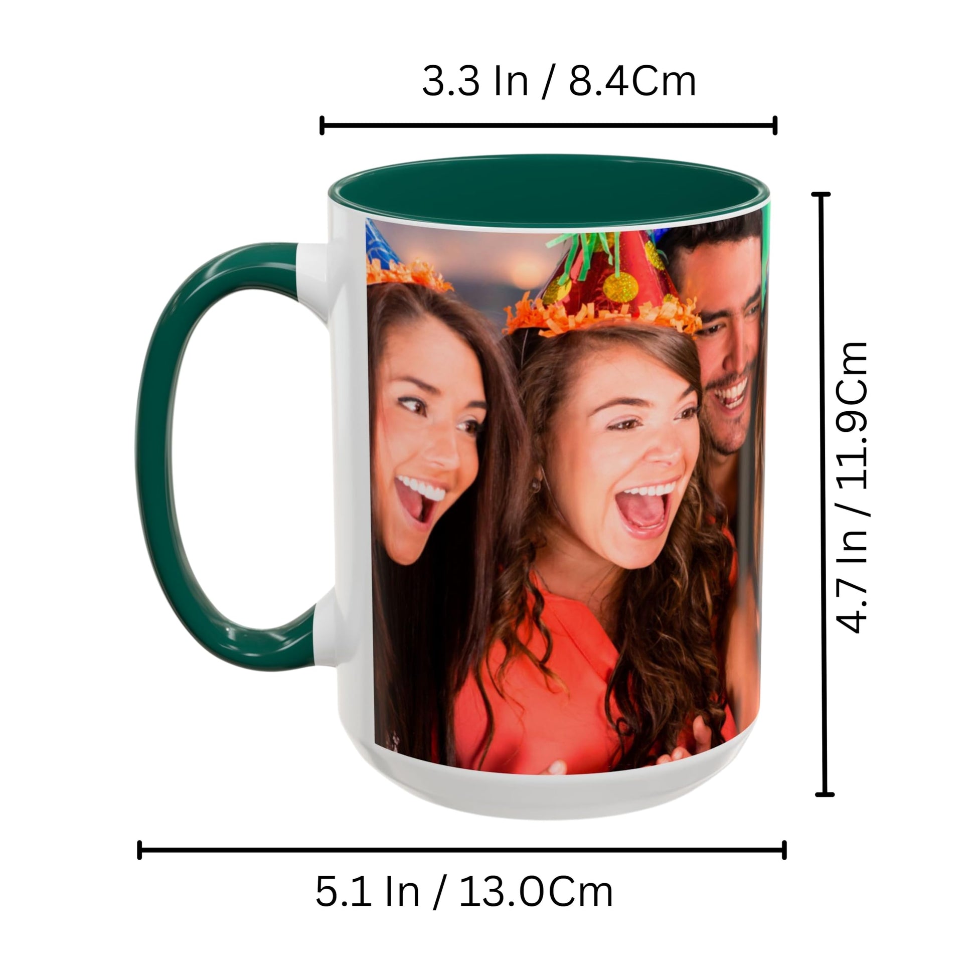 Custom Mug White/Green 15oz, Personalized Gift with Photo, Text or Logo, Wrap Around Design