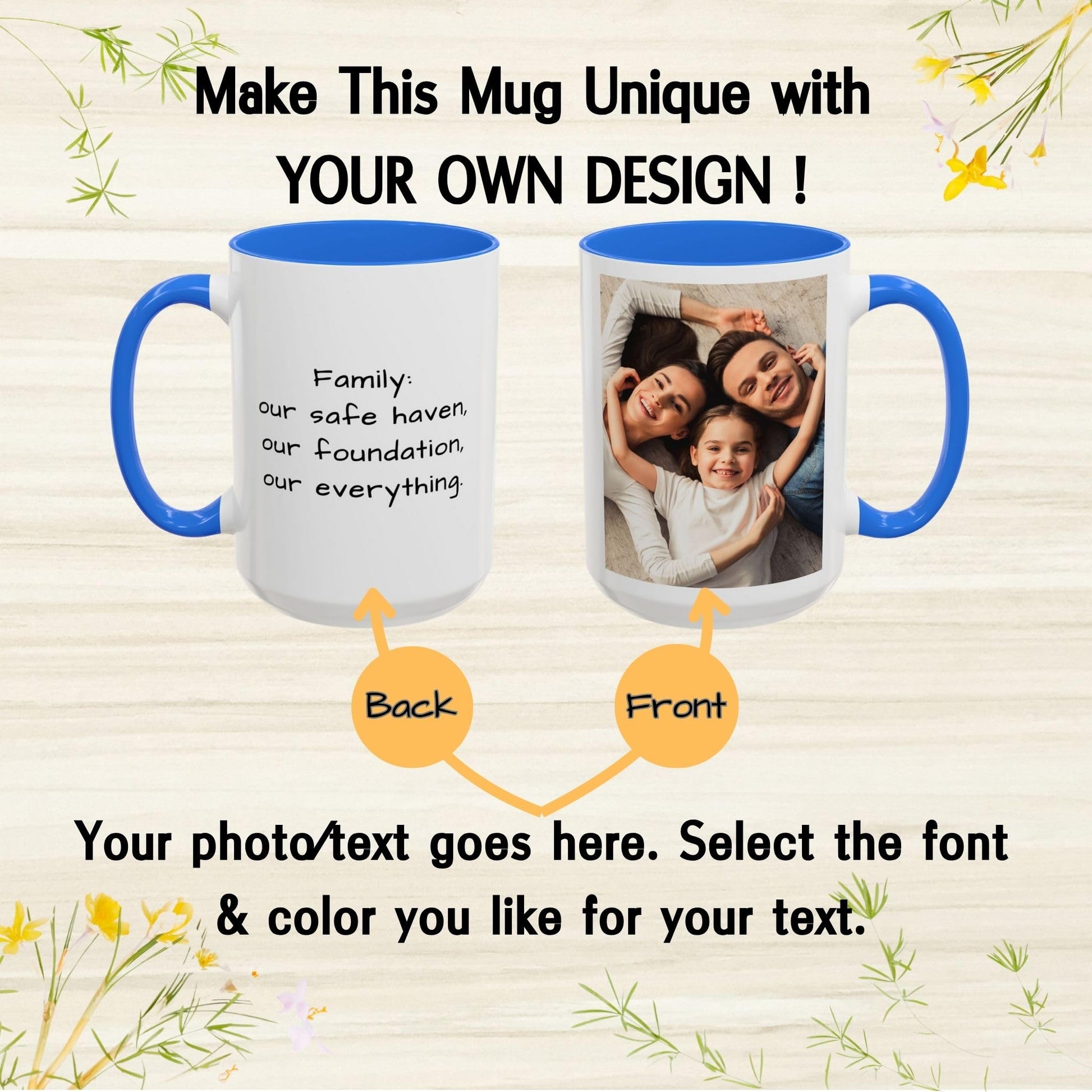- Customize your mug with a photo, pet image, family picture, text, or logo for a personal design.